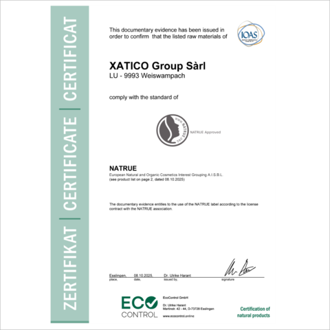 NATRUE certification for Sillitin products from our partner XATICO Group...